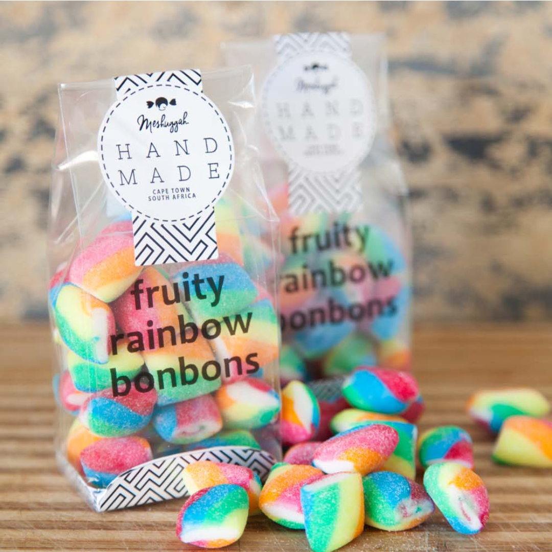 Add a burst of color and flavor to your day with these fruity rainbow bon bons! Each chewy sweet is packed with a delicious mix of fruity flavors and coated in a light sugar dusting for that classic bon bon finish. With their bright, playful colors and irresistible taste, they’re perfect for party favors, candy tables, or simply enjoying a sweet moment. A joyful treat for all ages!
