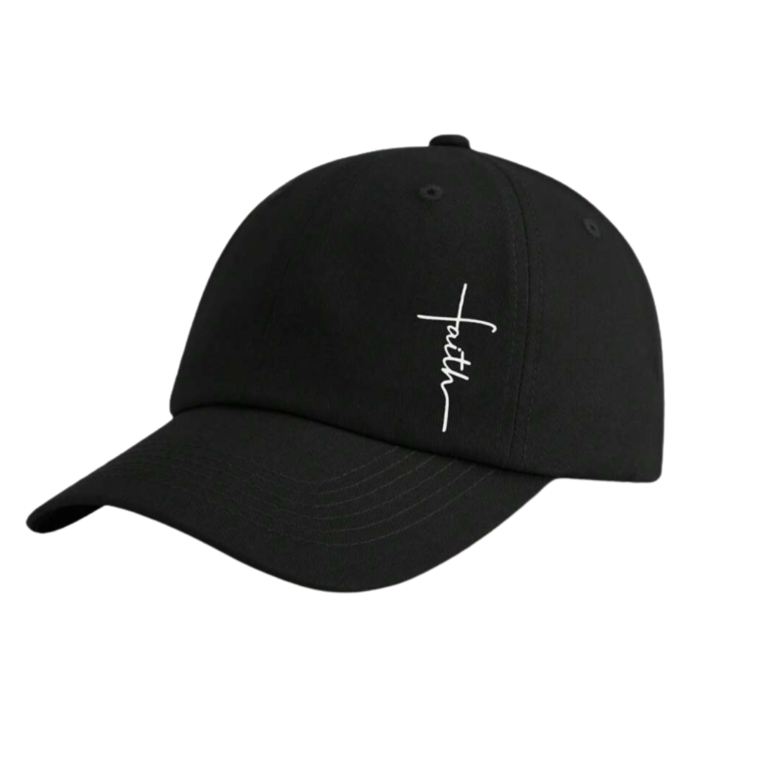 This sleek black cap features a clean, “Faith” design — a subtle yet powerful reminder to stay grounded, no matter what the day brings. It’s perfect for everyday wear, pairing effortlessly with any outfit. Whether you’re on the go or taking a moment to reflect, this cap speaks volumes without saying much.