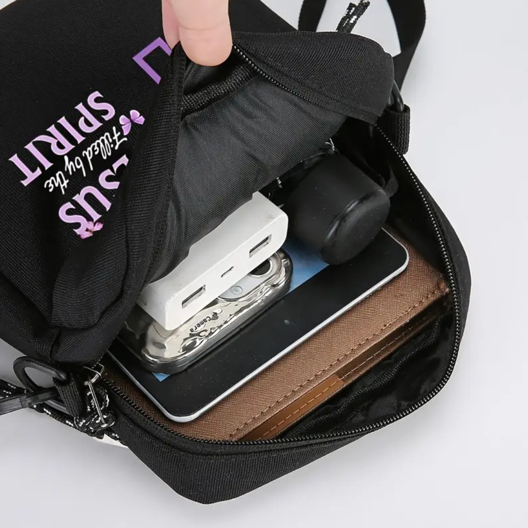 Sleek, stylish, and practical—this Black Crossbody Bag is your go-to companion for effortless everyday wear with a message faith. With its compact design and adjustable strap, it offers hands-free convenience without compromising on style. Perfectly sized to carry your essentials, it’s ideal for on-the-go days, travel, or casual outings. A timeless accessory that pairs beautifully with any outfit.